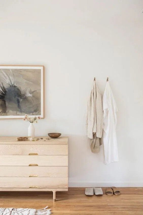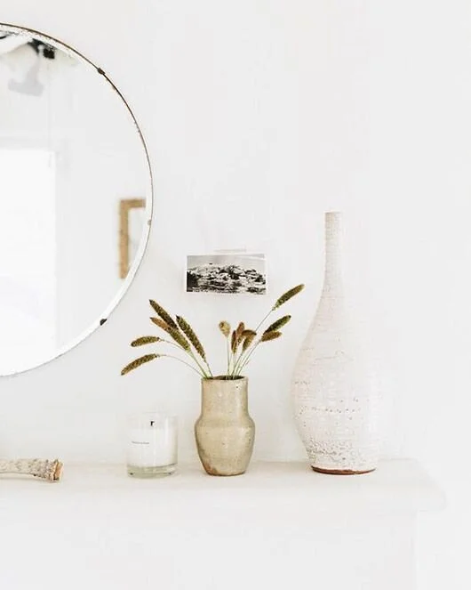 A focus on natural textures, touches of warm wood and soft tones (I'm really loving pale sage green right now), with simple lines.