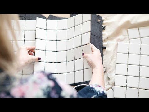This time around, I wanted to switch it up a little, so after spending way too long in the tile aisle at The Home Depot, I picked out a square, matte white tile and a charcoal grey grout for a high-contrast pairing that would give me a grid-like effect that I was looking forward to playing with.