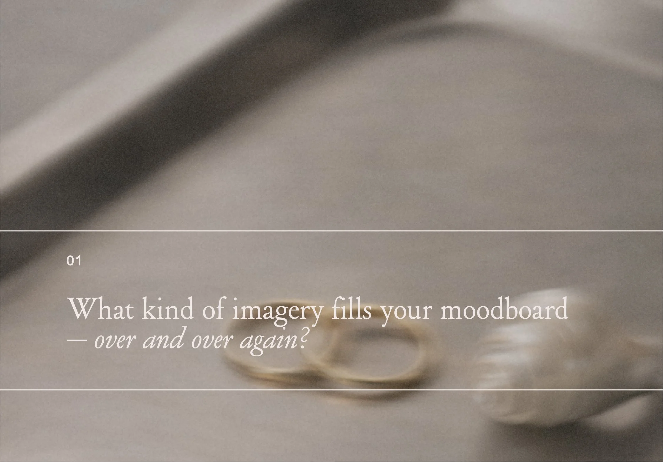 This reveals: your visual story and themes — romantic, restrained, graphic, or something else entirely.