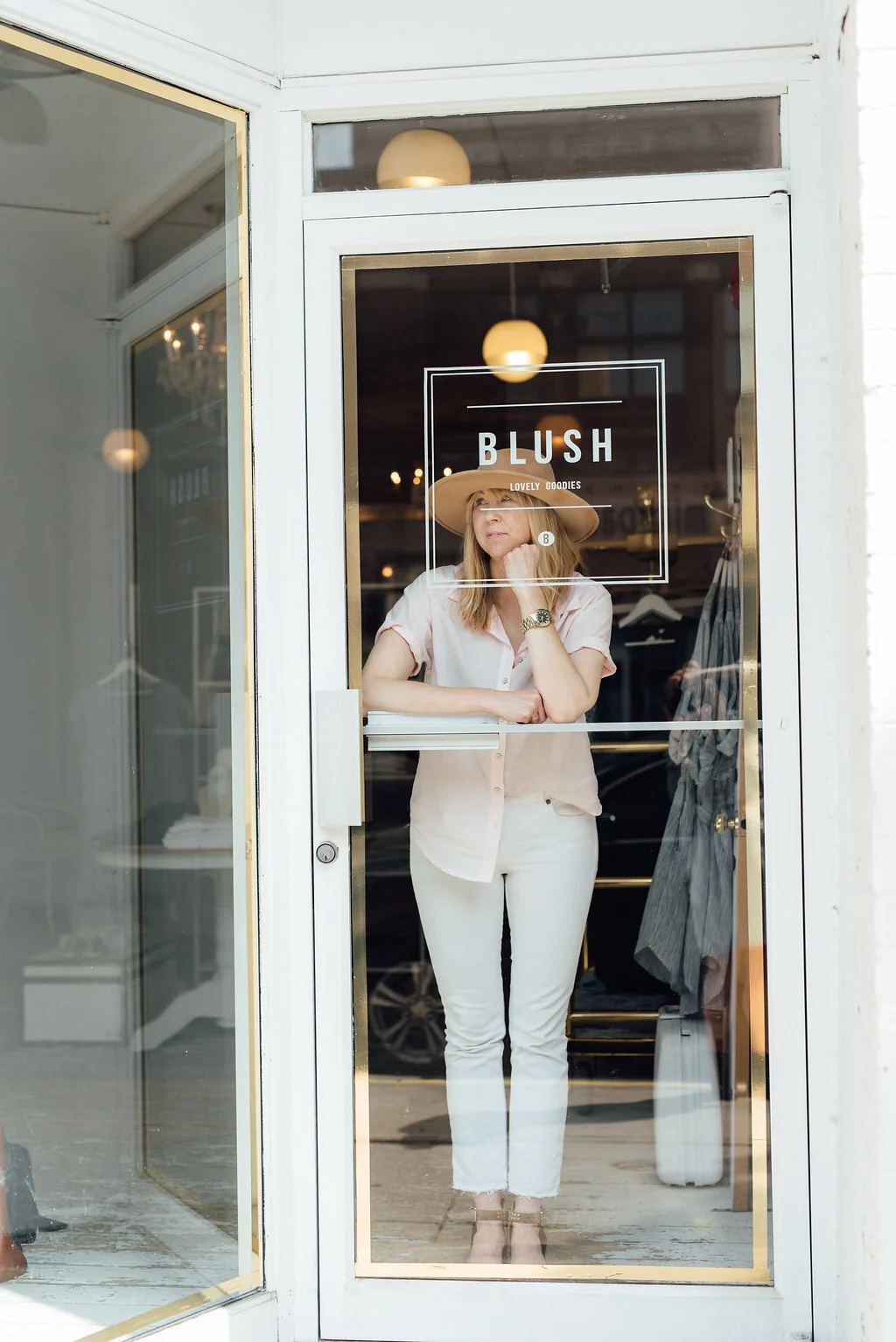 You refer to the shop as “the blush bubble”, and you’ve truly created the prettiest, dreamiest shopping experience. Can you tell us a little bit about how you use visual merchandising (and any other secrets you’re willing to share!) to create a special shopping experience and tell a story?
