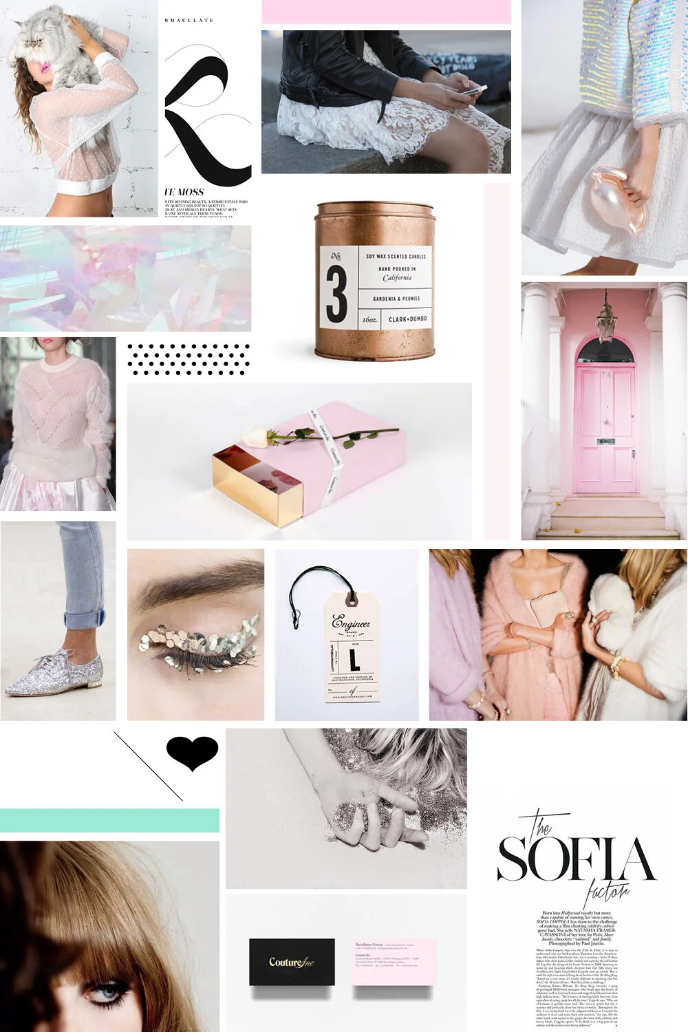 For example, most of my inspiration boards will include images of interiors or decor details, an outfit or two, maybe a few packaging or branding design samples, and a mix of images from photo shoots that capture other aspects of the theme in some way or another.