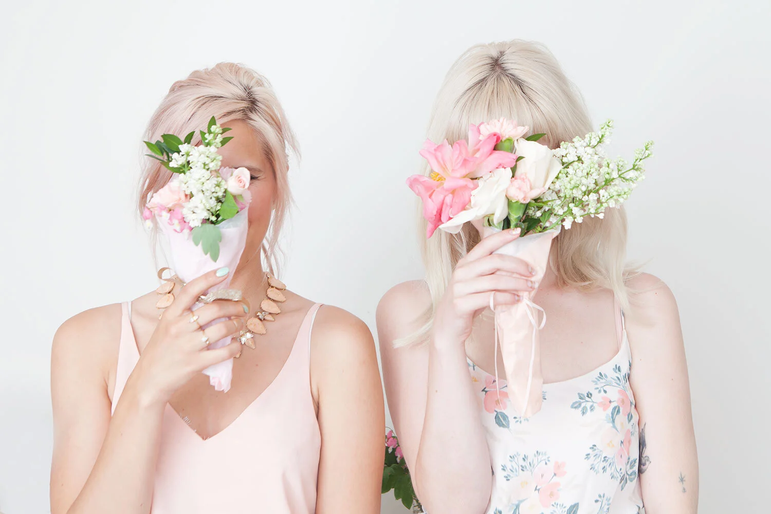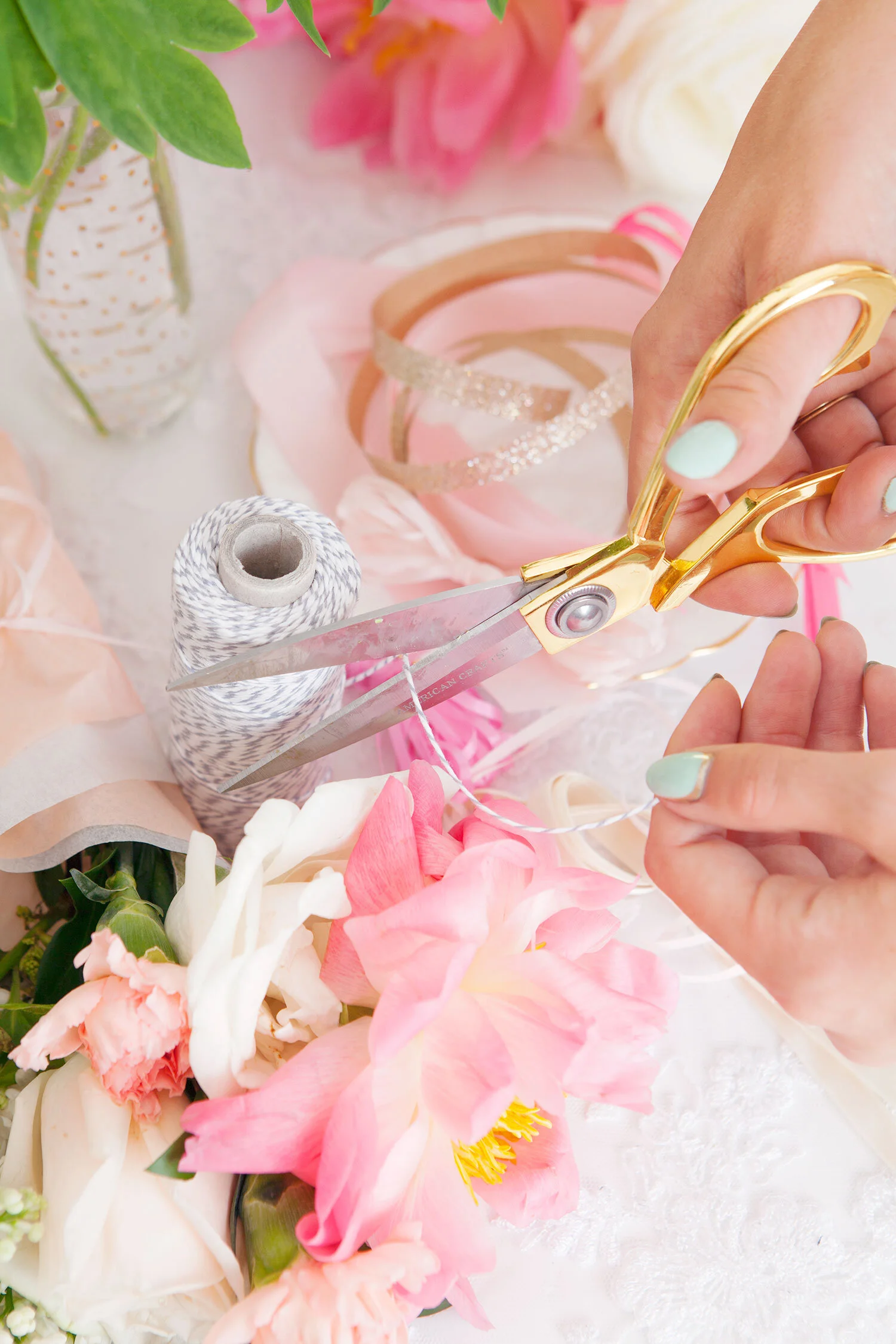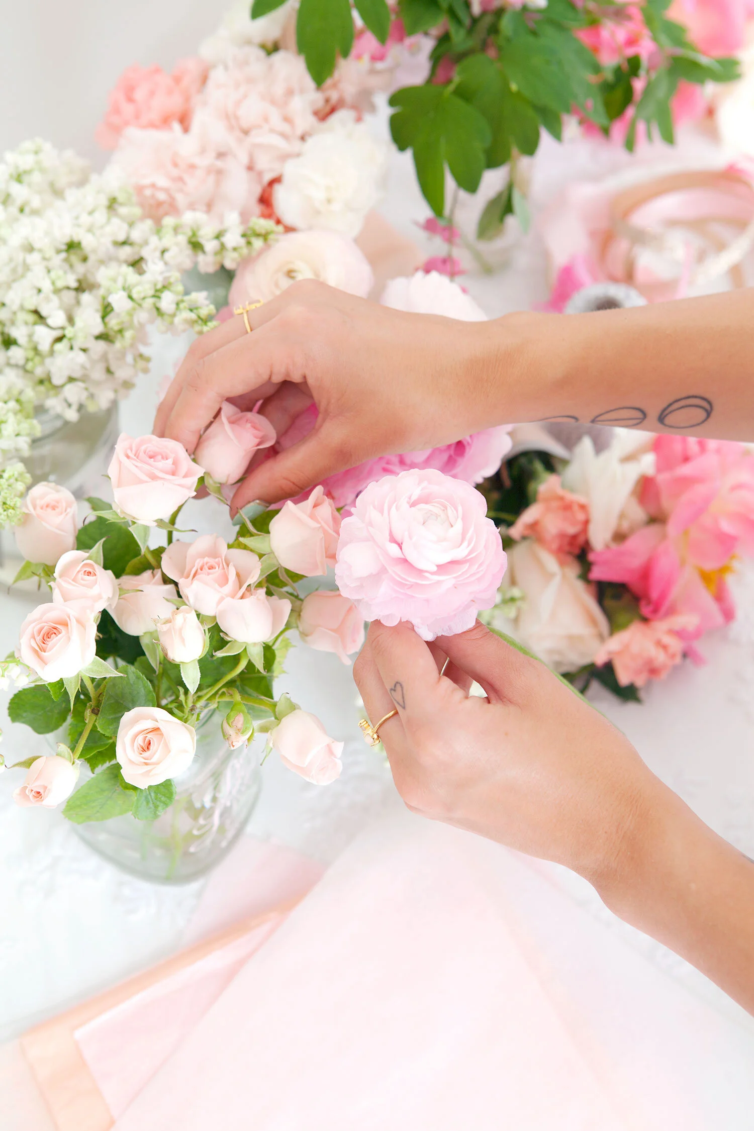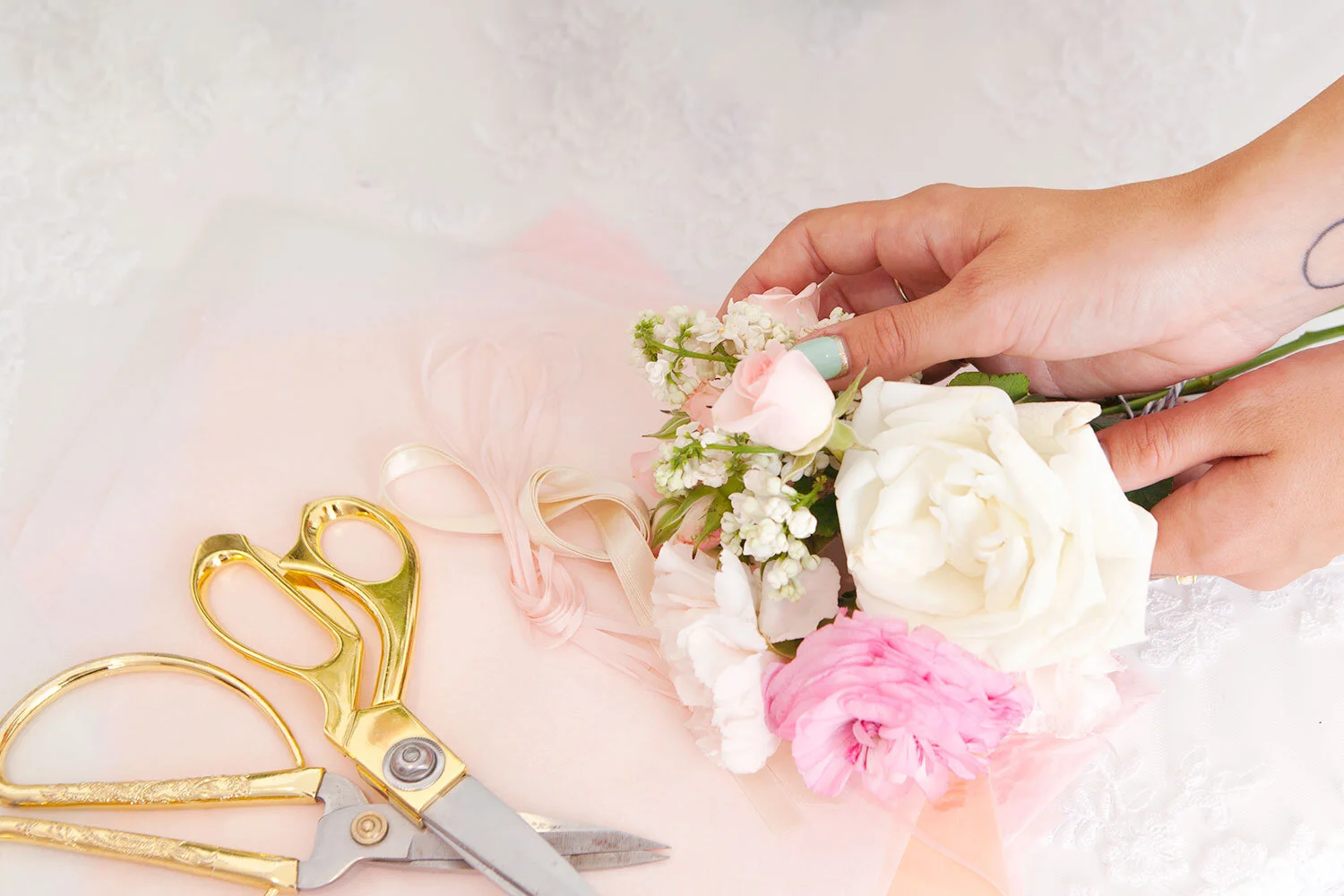 Alyssa and I dreamed up this peachy party bar shoot with the idea that anyone could add one (or all three) of these simple DIY spreads to their bridal shower, baby shower, or summer party setup. They’re the perfect way to add some colour to your party, whatever you’re celebrating! All you need is a lacy tablecloth, fresh flowers, and a few really simple, easy to find props.