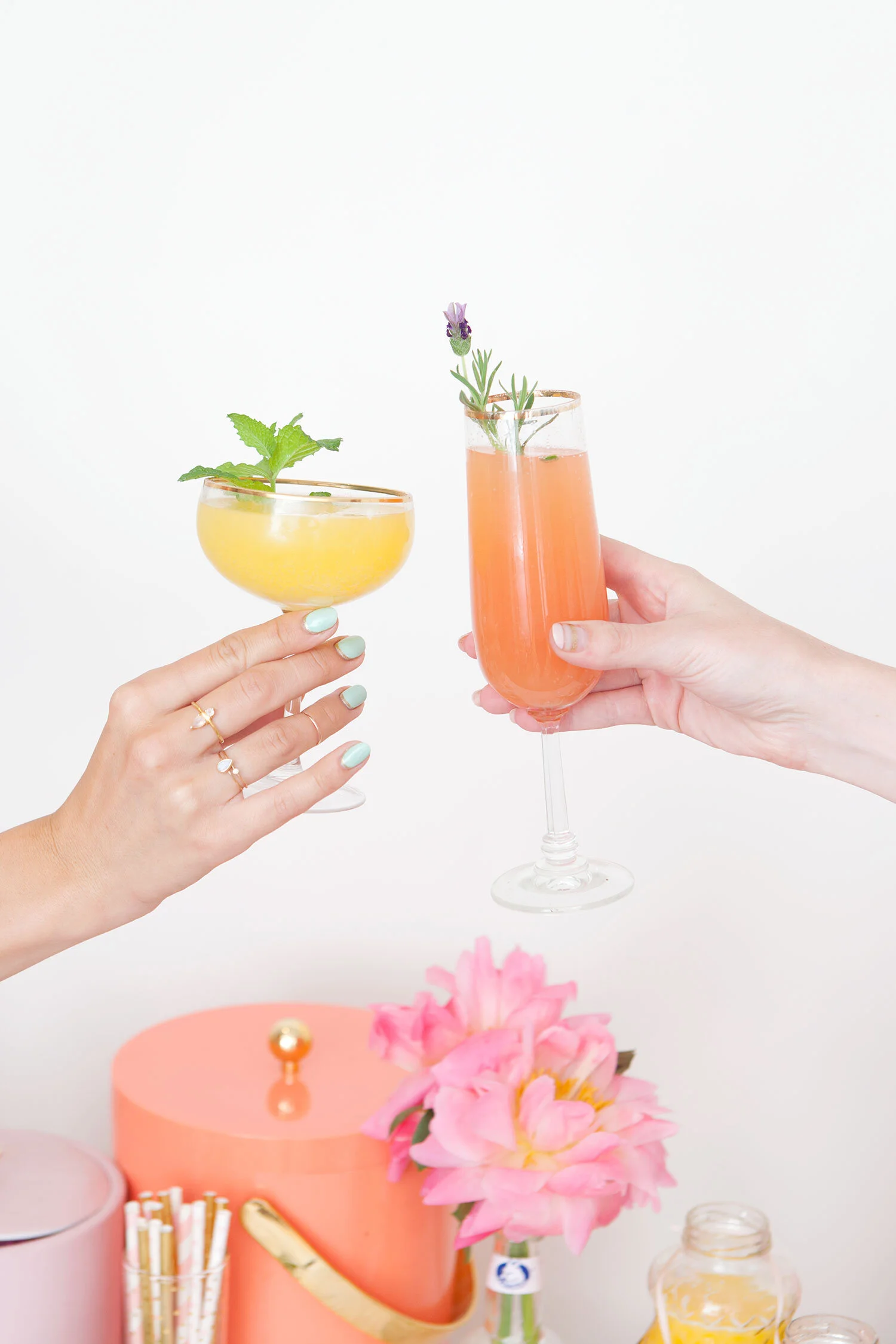 Throwing a brunch or lunchtime gathering? A mimosa bar is a great ice breaker (no pun intended), and with the right juice choices it can really add some fun pops of colour to your decor. Don’t forget to get creative with garnishes and add-ins!
